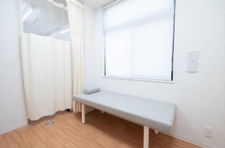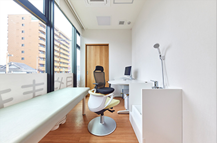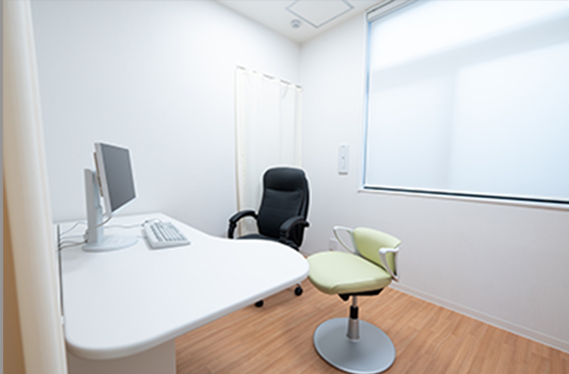 - 窓があり明るい診察室です。医師による診察をおこないます。