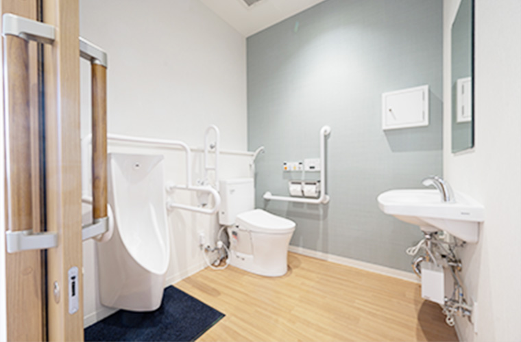 - バリアフリーの広々としたトイレです。車椅子でもお入りいただけます。