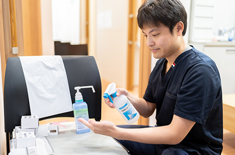 スタッフは消毒してから院内に戻ります。