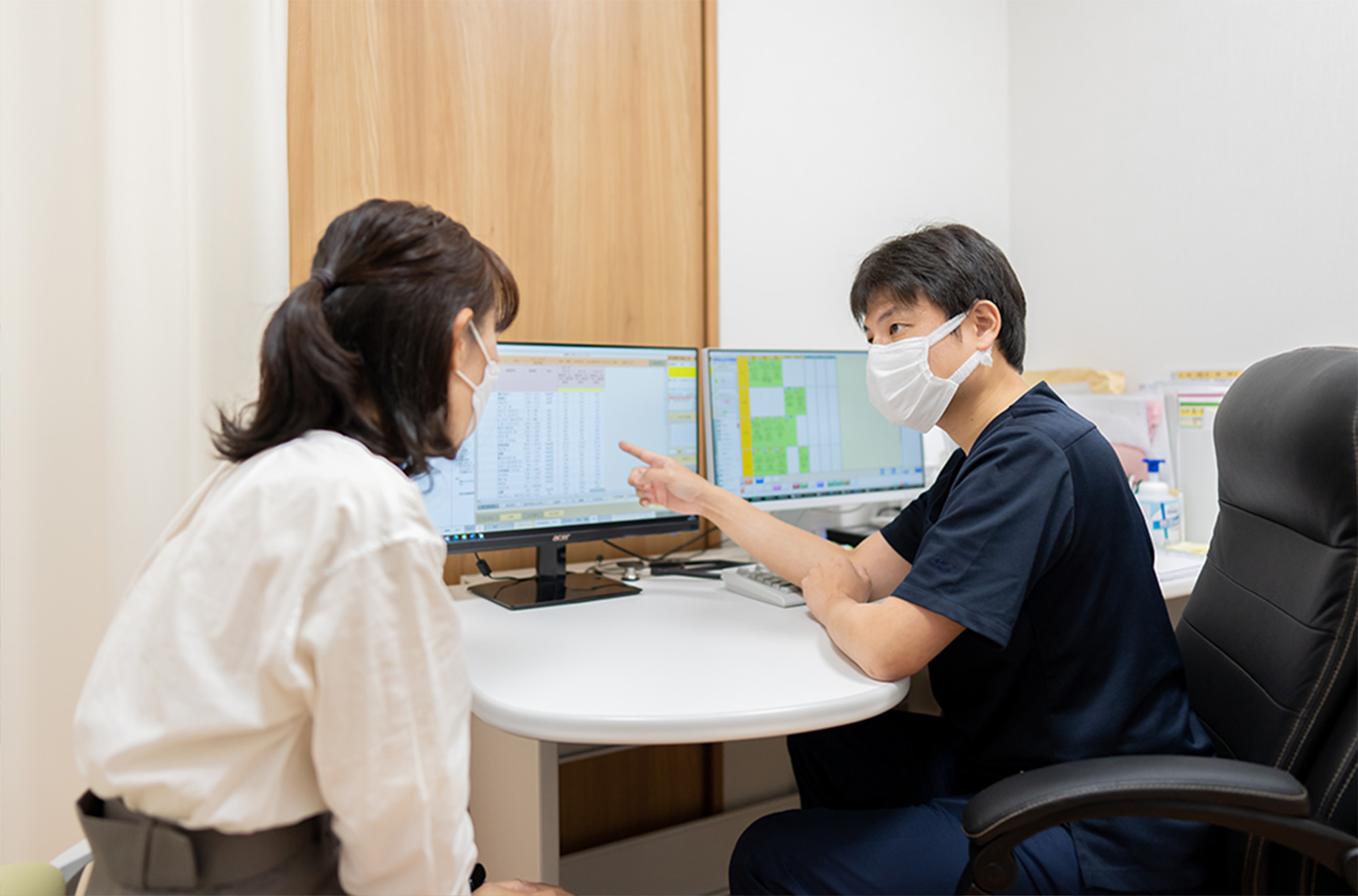 医師の診察になります。検査結果やヒアリングをもとに、患者さま一人ひとりに分かりやすく、丁寧な治療をおこないます。